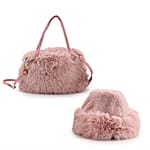 Doorbuster Tamsy Pink Solid Bucket Fur Hat Set with Bag