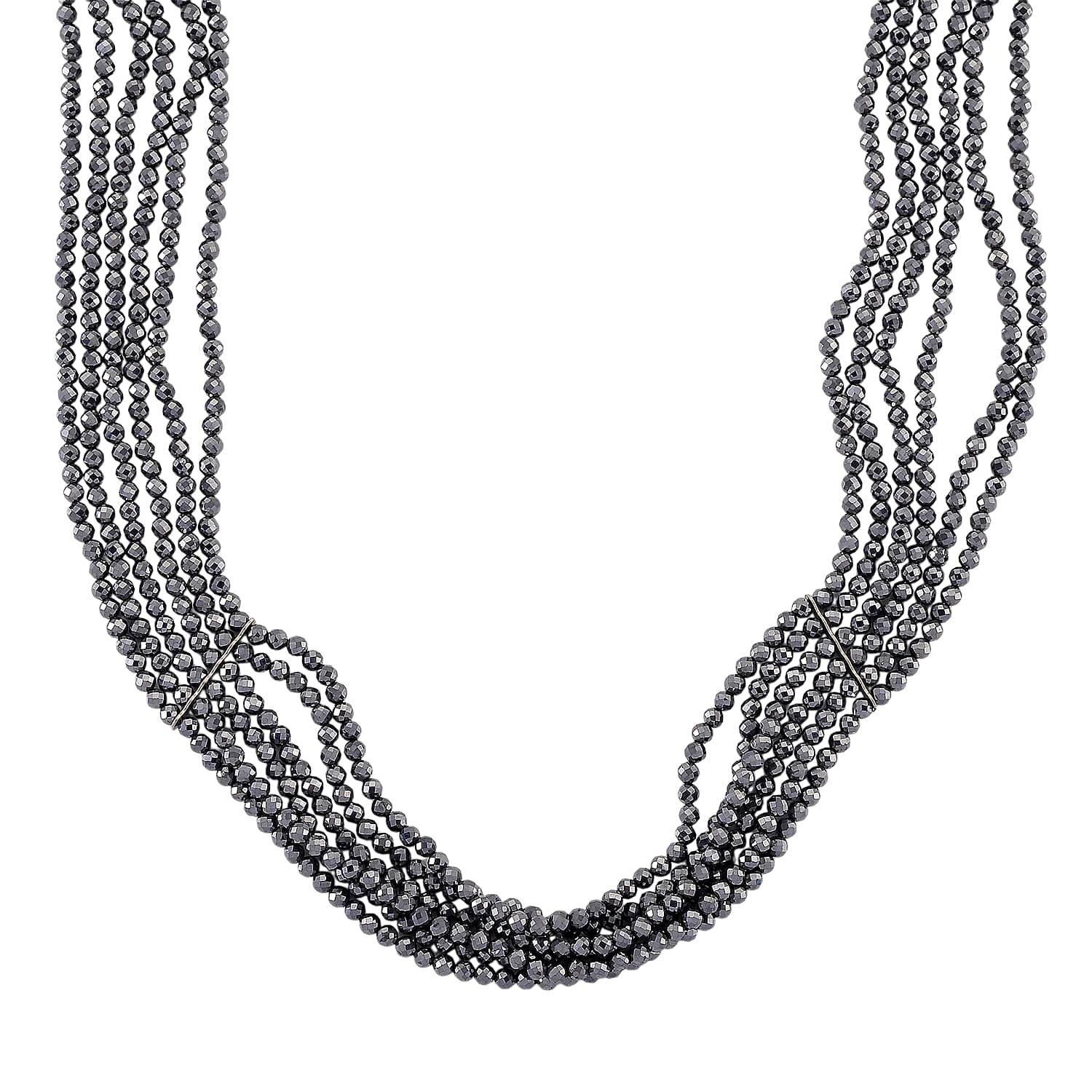 Doorbuster Terahertz 150.00 ctw Beaded Multi Row Necklace in Silvertone and Stainless Steel 16-20 Inches