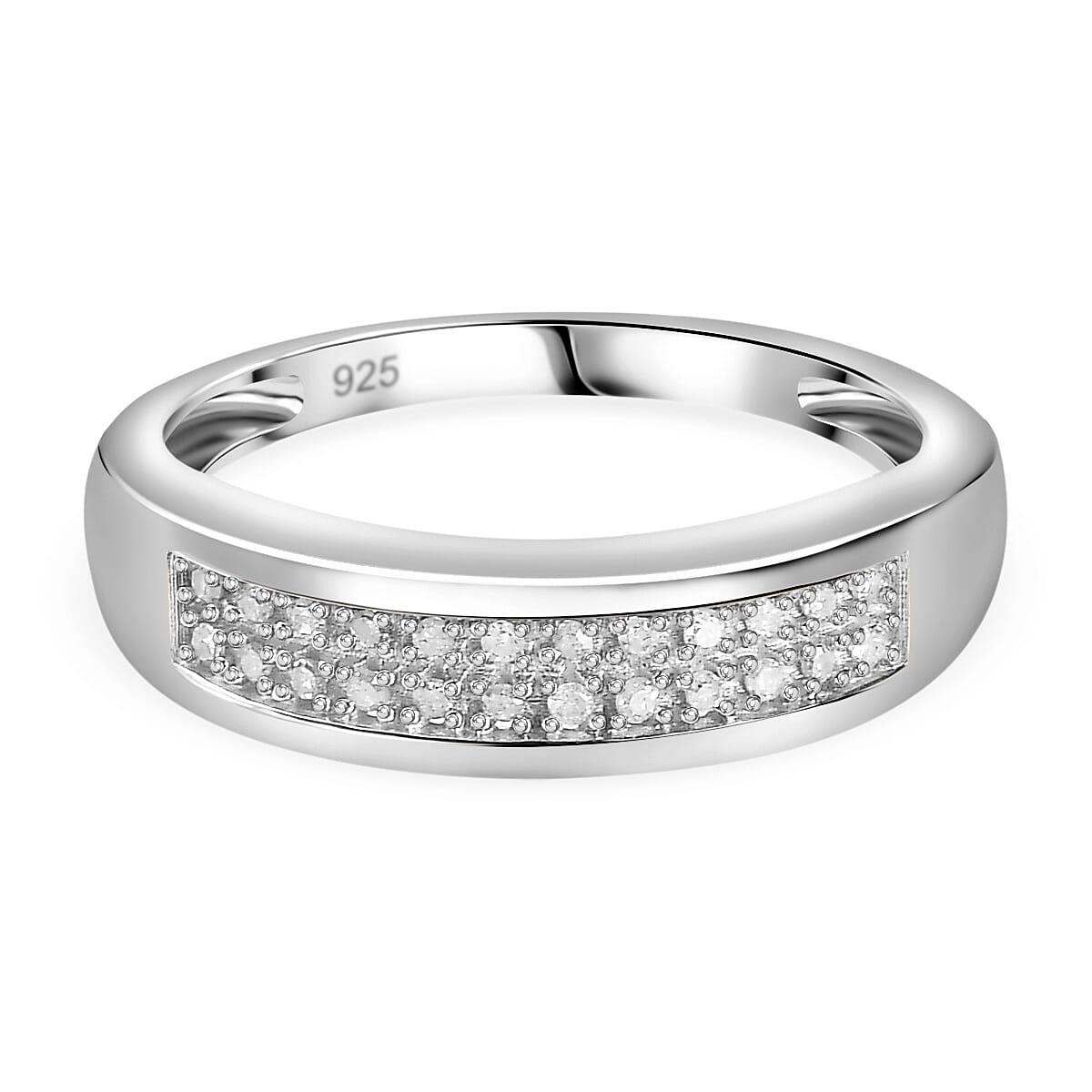 This sterling silver diamond band ring features round diamonds meticulously set across the band, epitomizing elegance and resilience. Designed for daily wear, it combines the timeless appeal of diamonds with the durability of sterling silver.