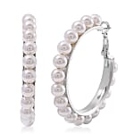 Doorbuster White Shell Pearl Beaded Hoop Earrings in Stainless Steel
