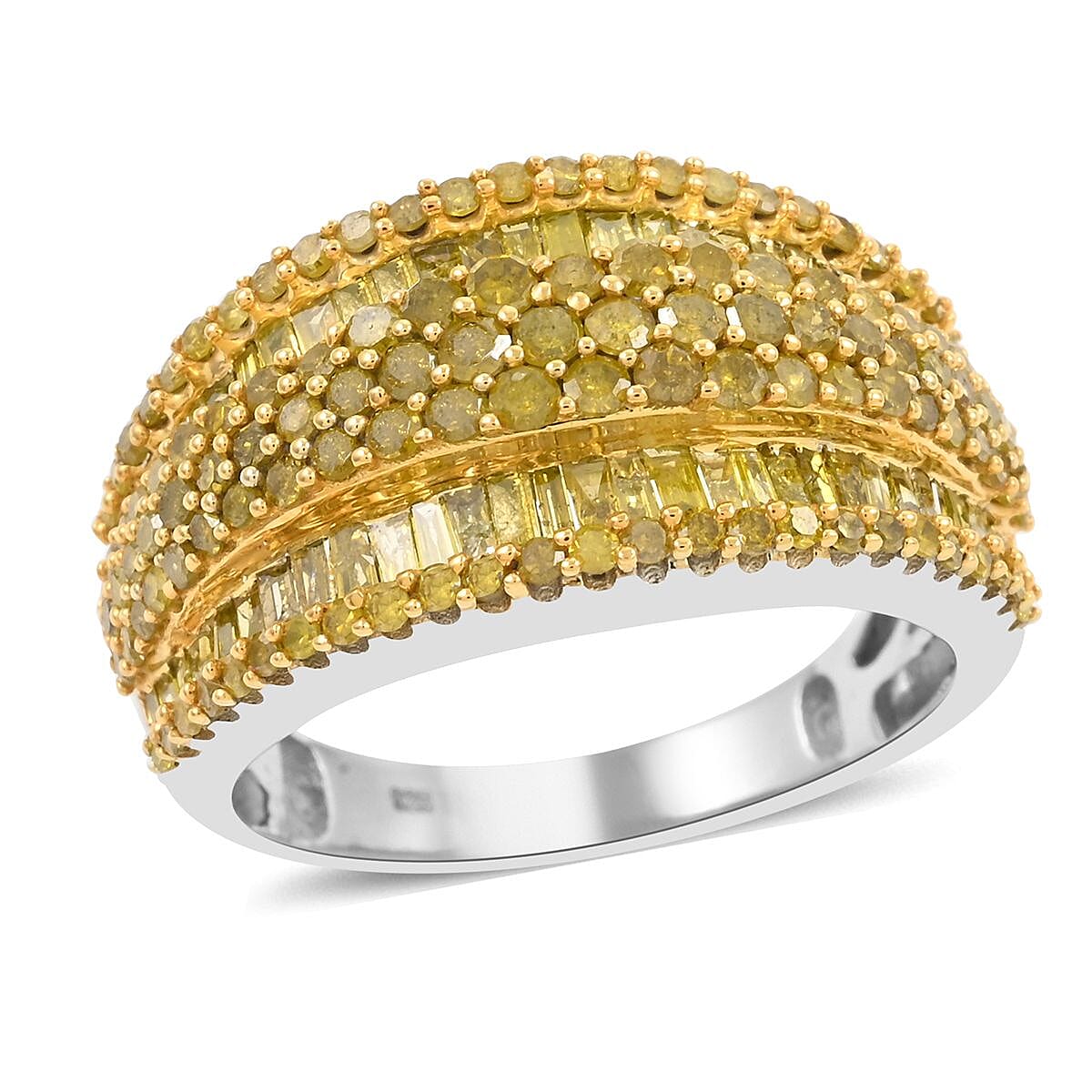 Doorbuster Yellow Diamond Ring in Platinum Over Sterling Silver (Size 10.0) 2.00 ctw