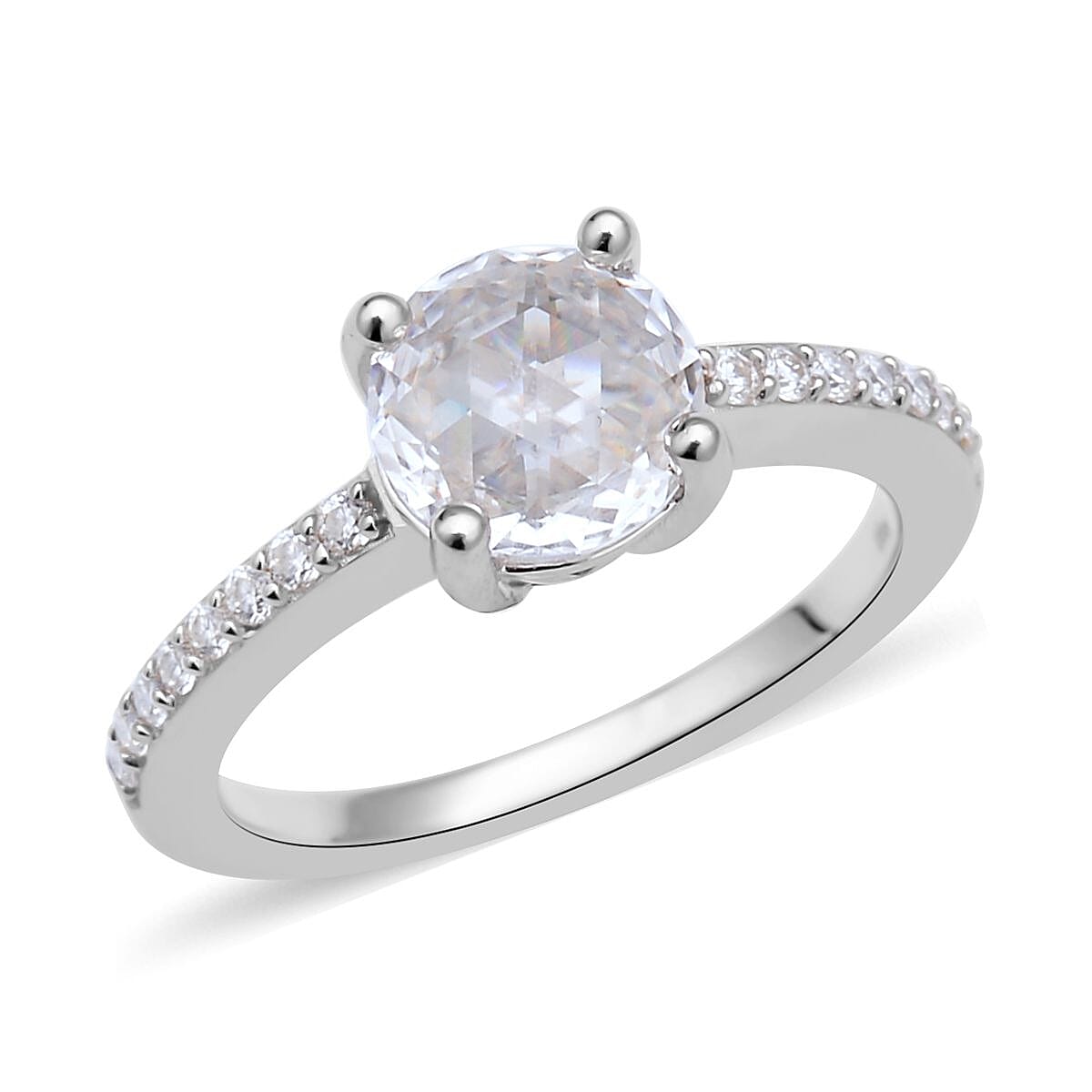 Double Rose Cut Moissanite Ring in Rhodium Over Sterling Silver (Size 9.0) 2.00 ctw