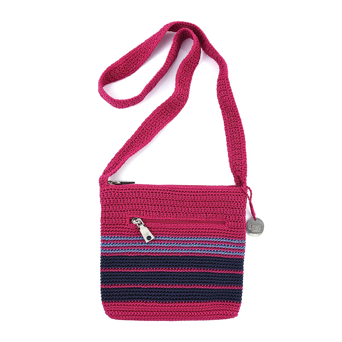DOWA Dark Pink, Purple and Navy 100% Nylon Handwoven Crossbody Bag