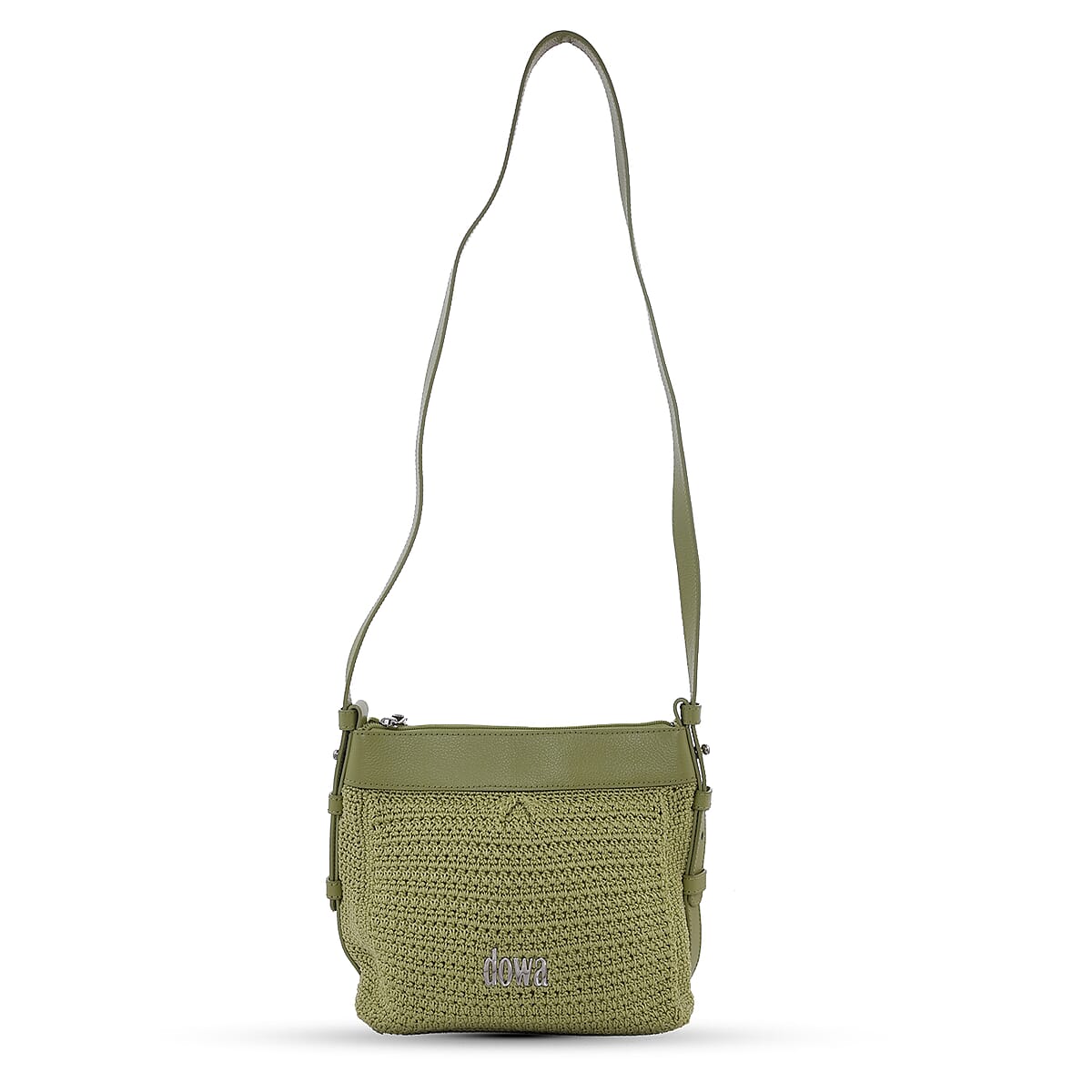 DOWA Light Green 100% Nylon with Leather Handwoven Crossbody Bag