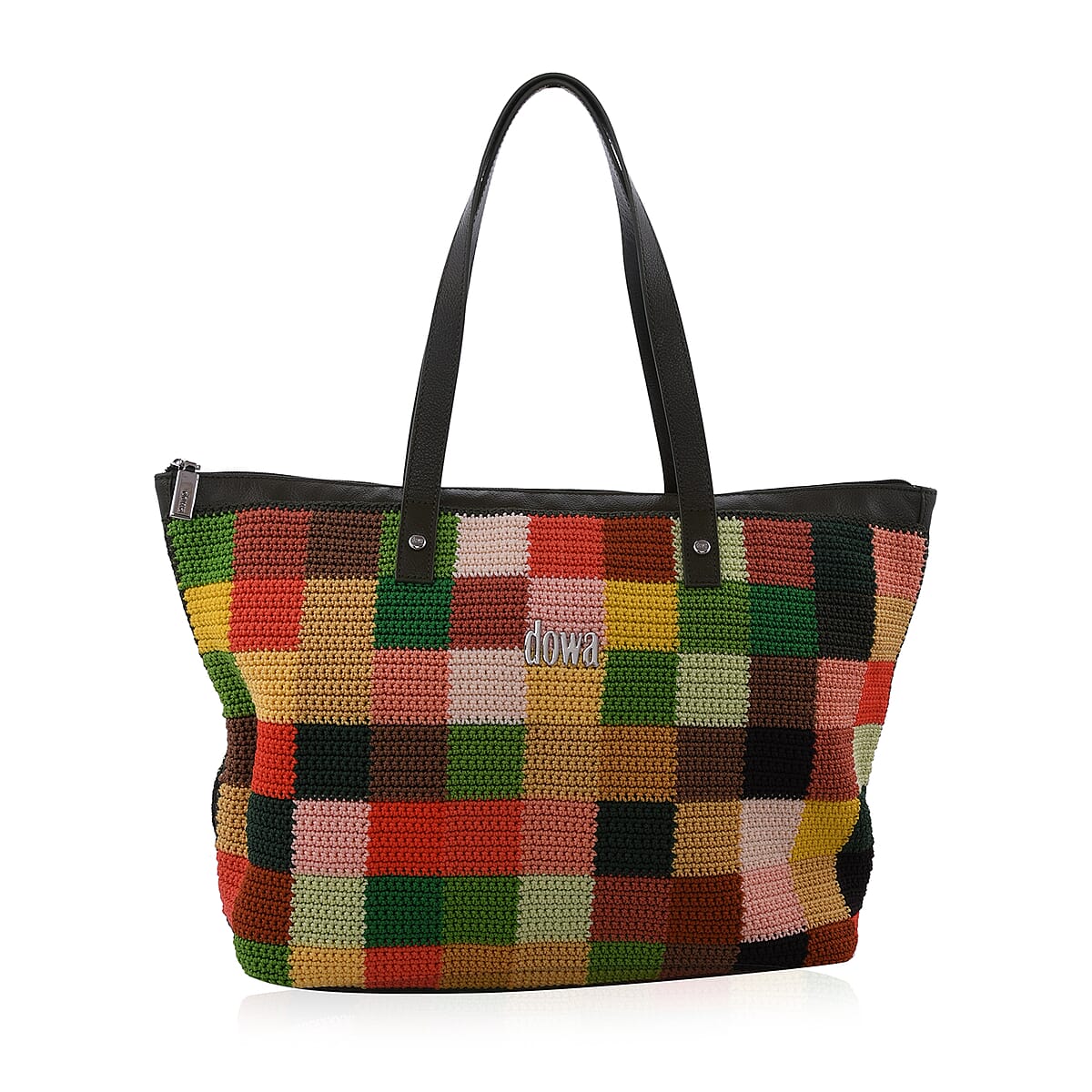 DOWA Olive Green, Multicolor 100% Nylon with Leather Handwoven Tote Bag