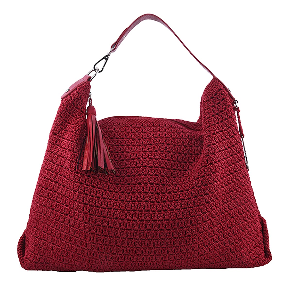 DOWA Red 100% Nylon with Leather Handwoven Tote Bag