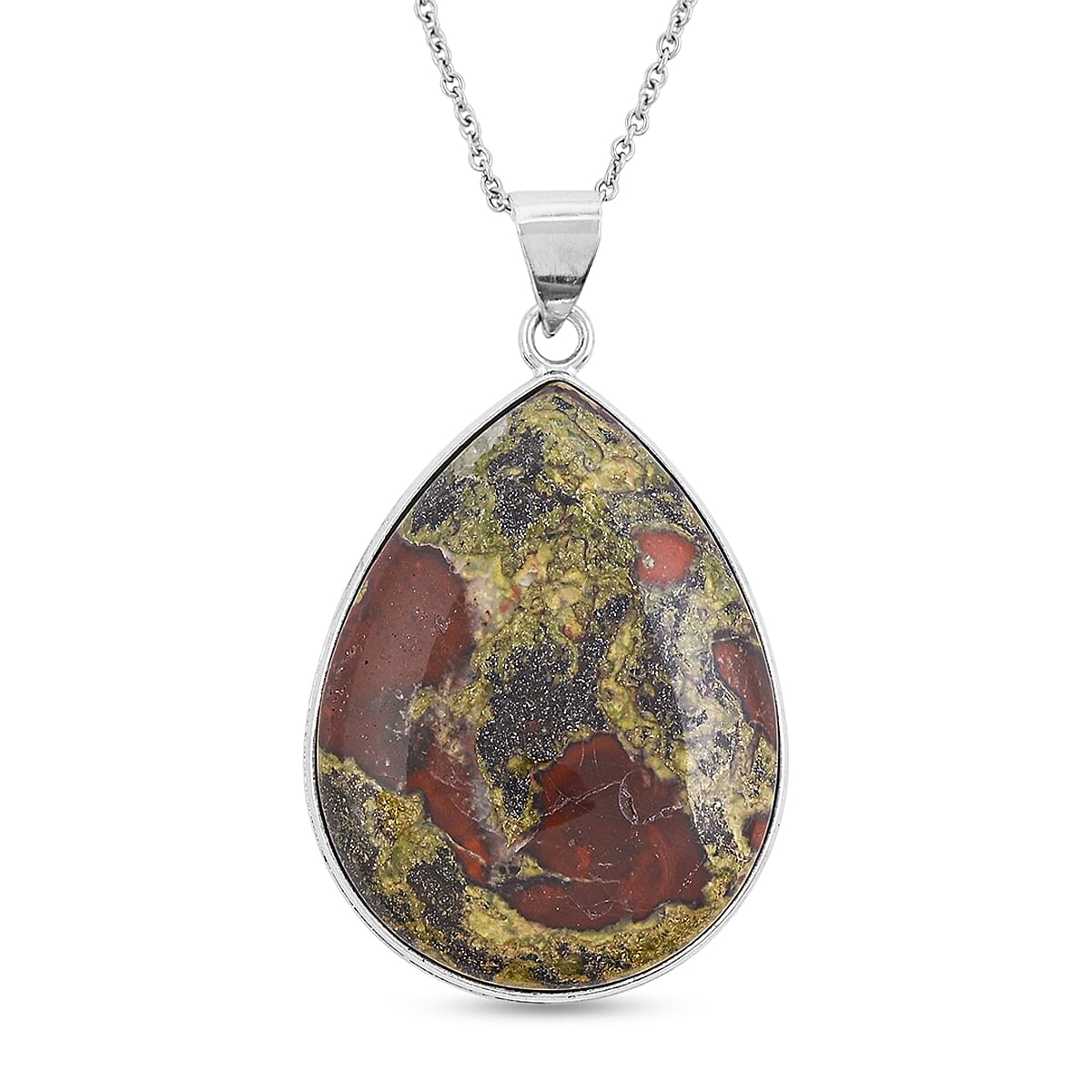 Dragon Blood Jasper 60.00 ctw Pendant in Silvertone with Stainless Steel Necklace 20 Inches