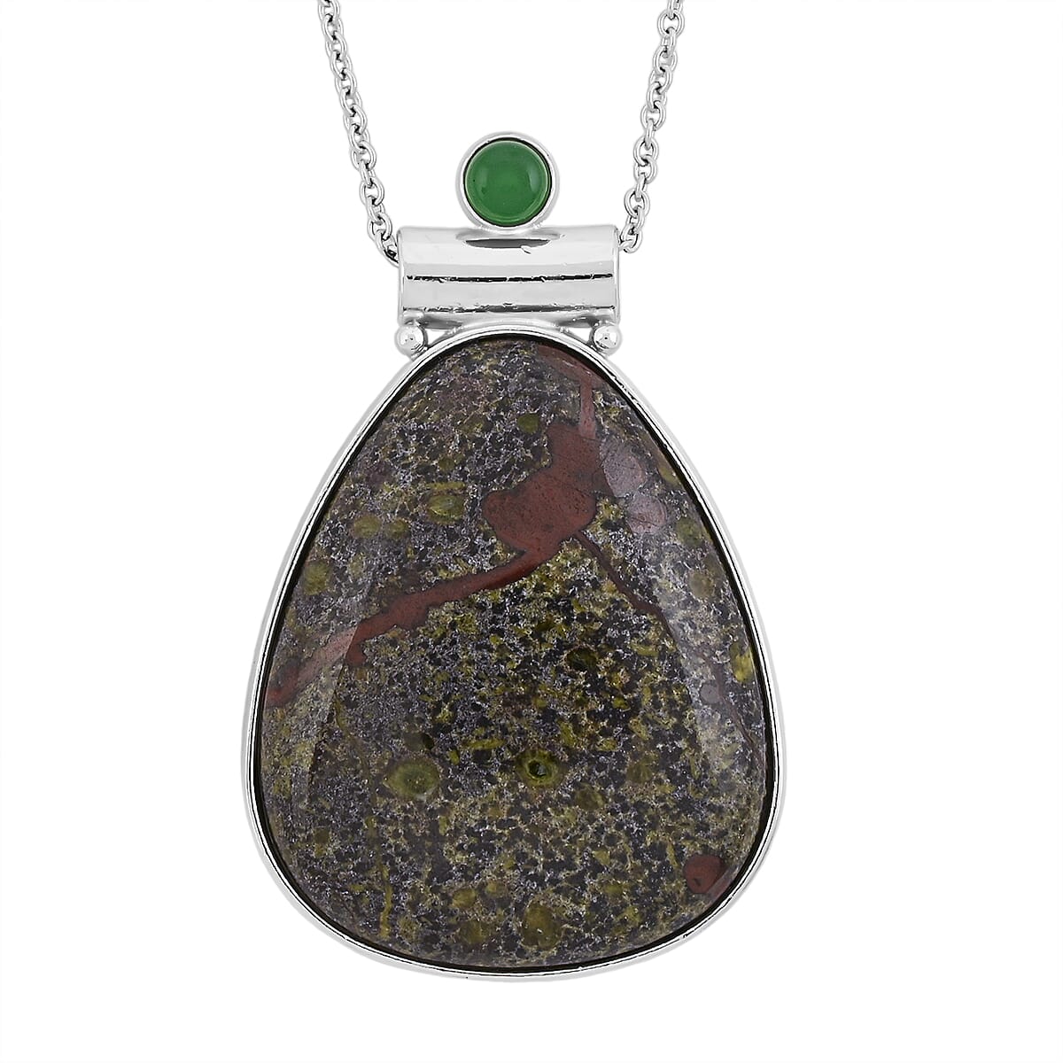 Dragon Bloodstone Jasper and Multi Gemstone 36.00 ctw Drop Frame Pendant in Silvertone with Stainless Steel Necklace 20 Inches