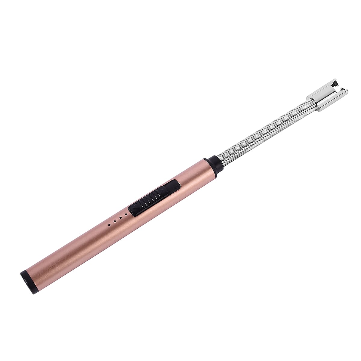 Electric Rechargeable Arc Candle Lighter Windproof Flameless with LED Battery Display and Longer 360 Degree Rotation Flexible Neck - Rose Gold