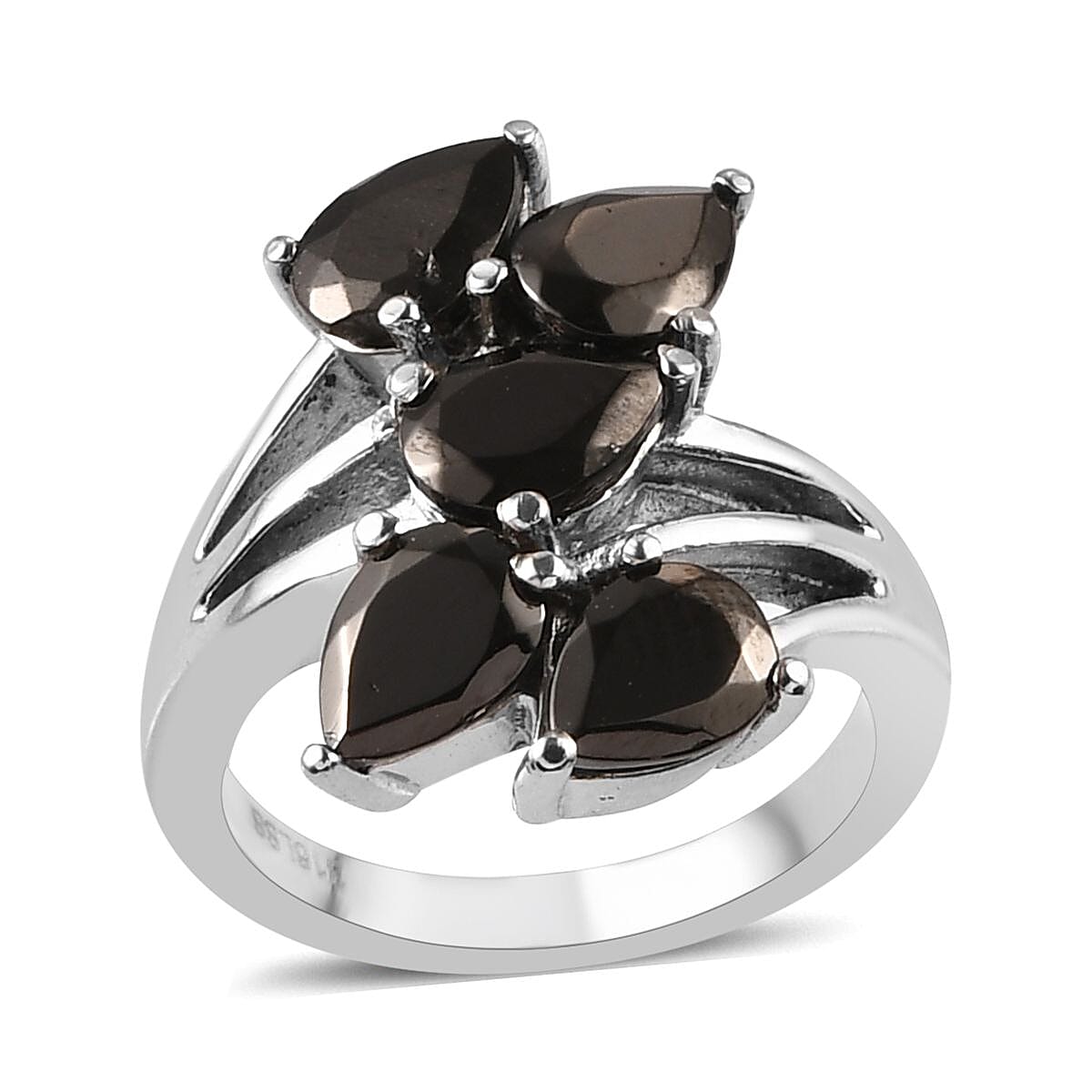 Elite Shungite 5 Stone Ring in Stainless Steel (Size 6.0) 2.10 ctw , Tarnish-Free, Waterproof, Sweat Proof Jewelry