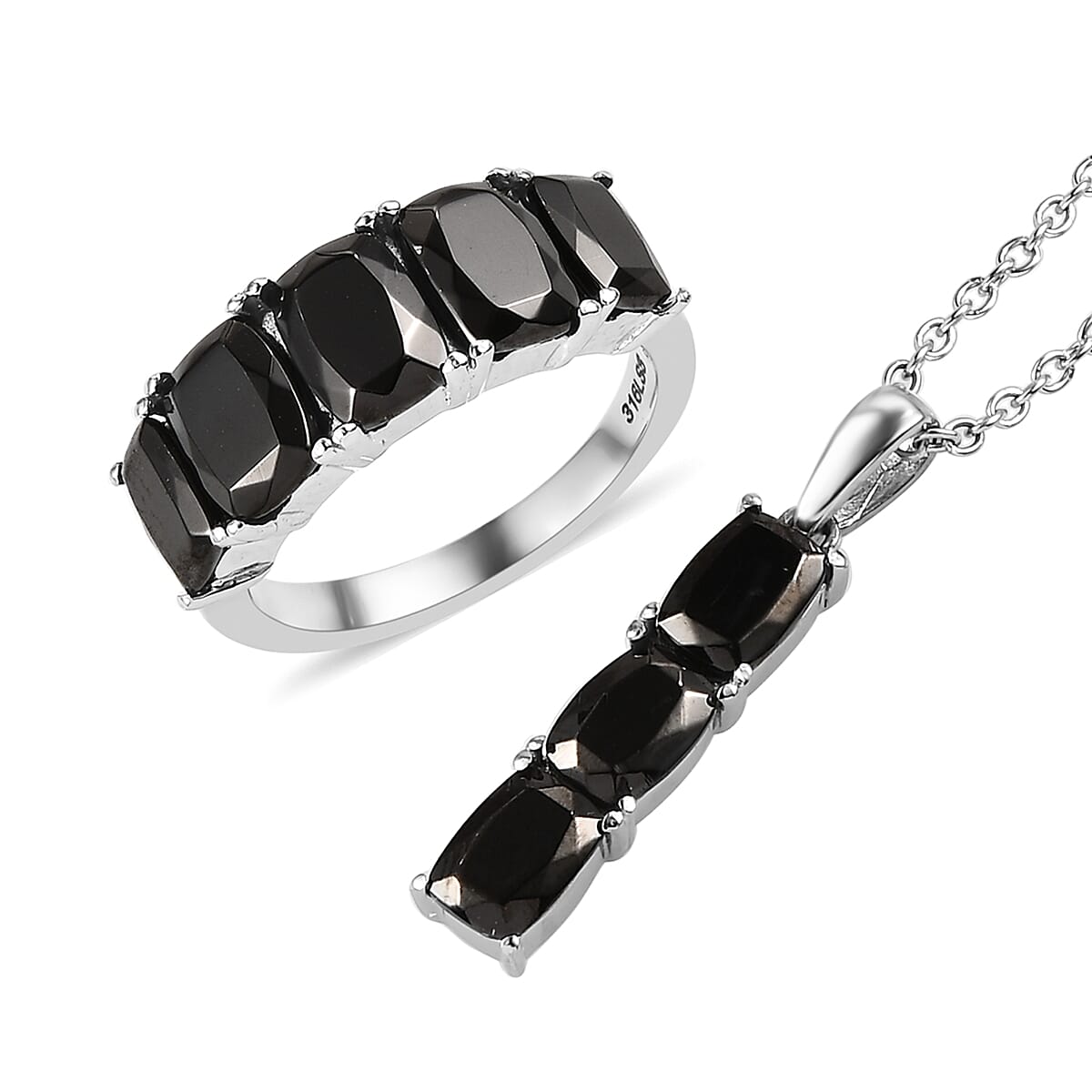 Elite Shungite 5 Stone Ring (Size 6) and Pendant Necklace (20 Inches) in Stainless Steel 3.60 ctw