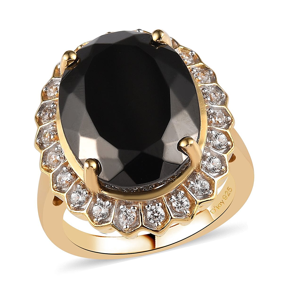 Elite Shungite and White Zircon Halo Ring in Vermeil Yellow Gold Over Sterling Silver (Size 10.0) 6.35 ctw