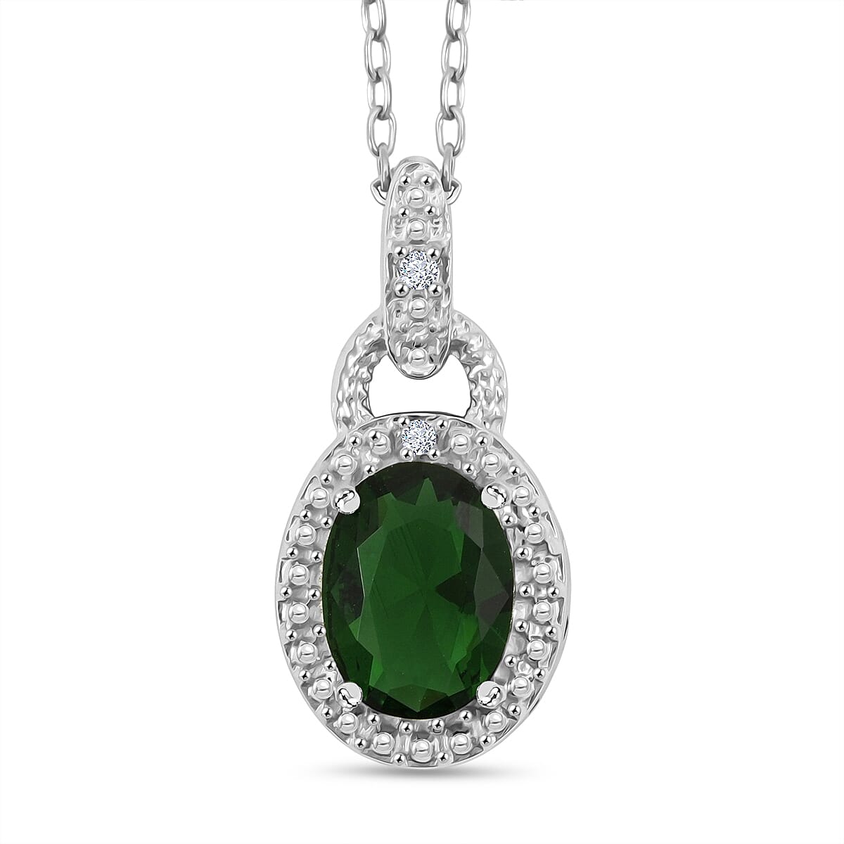 Emerald and Diamond 1.52 ctw Pendant Necklace 18 Inches in Rhodium Over Sterling Silver