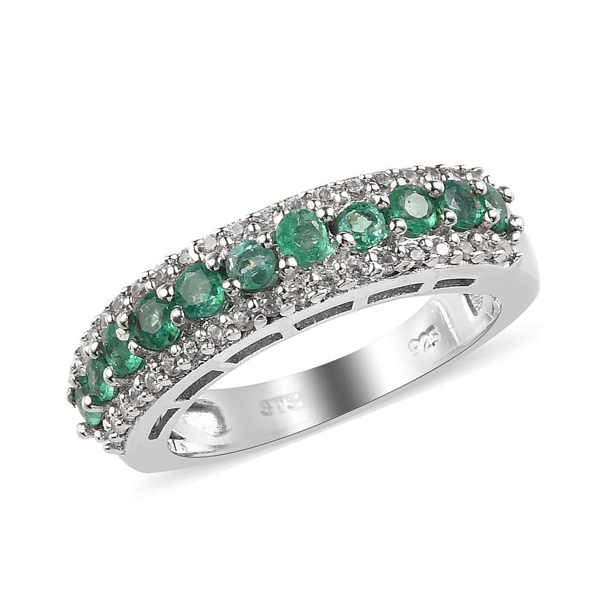 Emerald and Zircon Ring in Platinum Over Sterling Silver (Size 7.0) 1.50 ctw