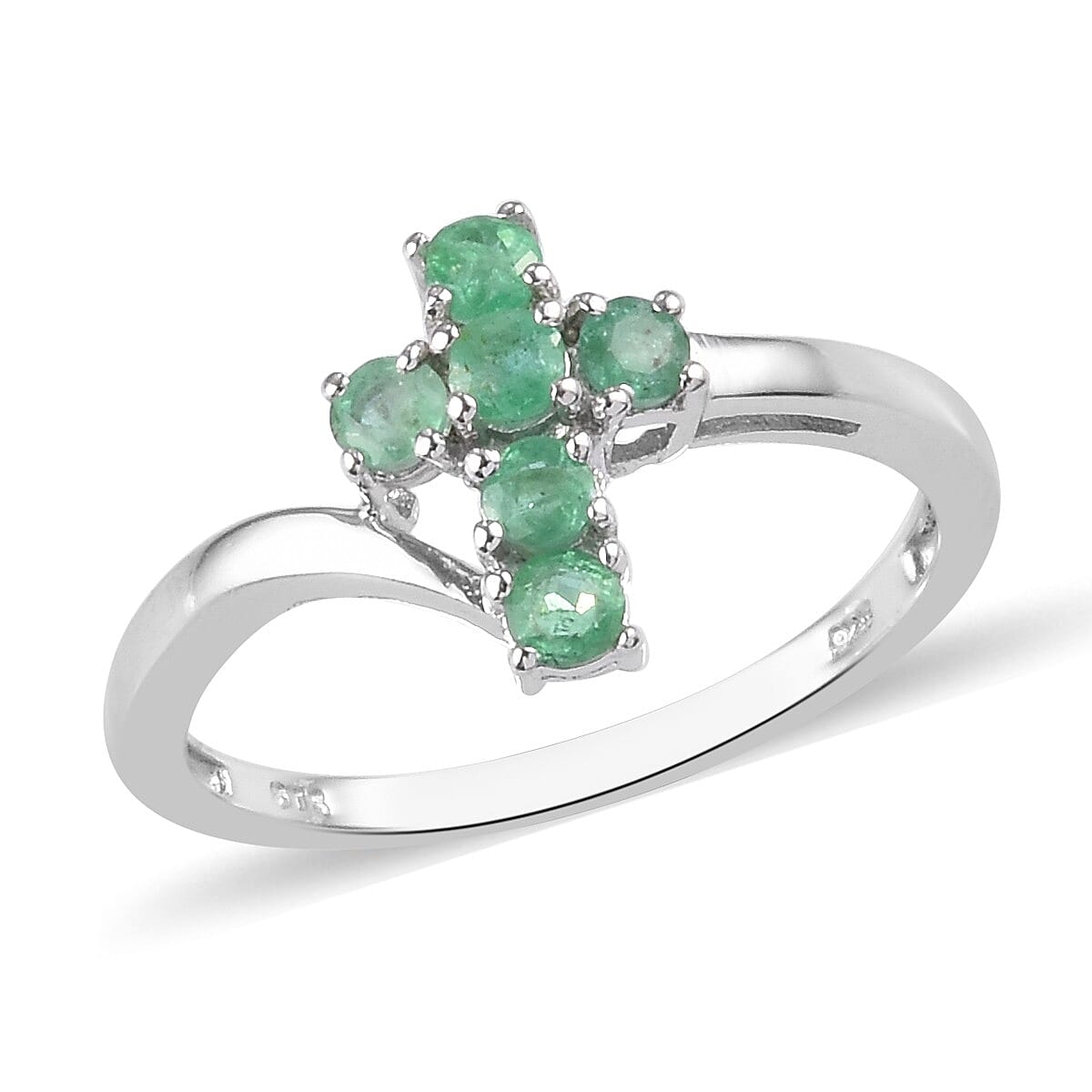 Emerald Cross Ring in Platinum Over Sterling Silver 1.30 ctw