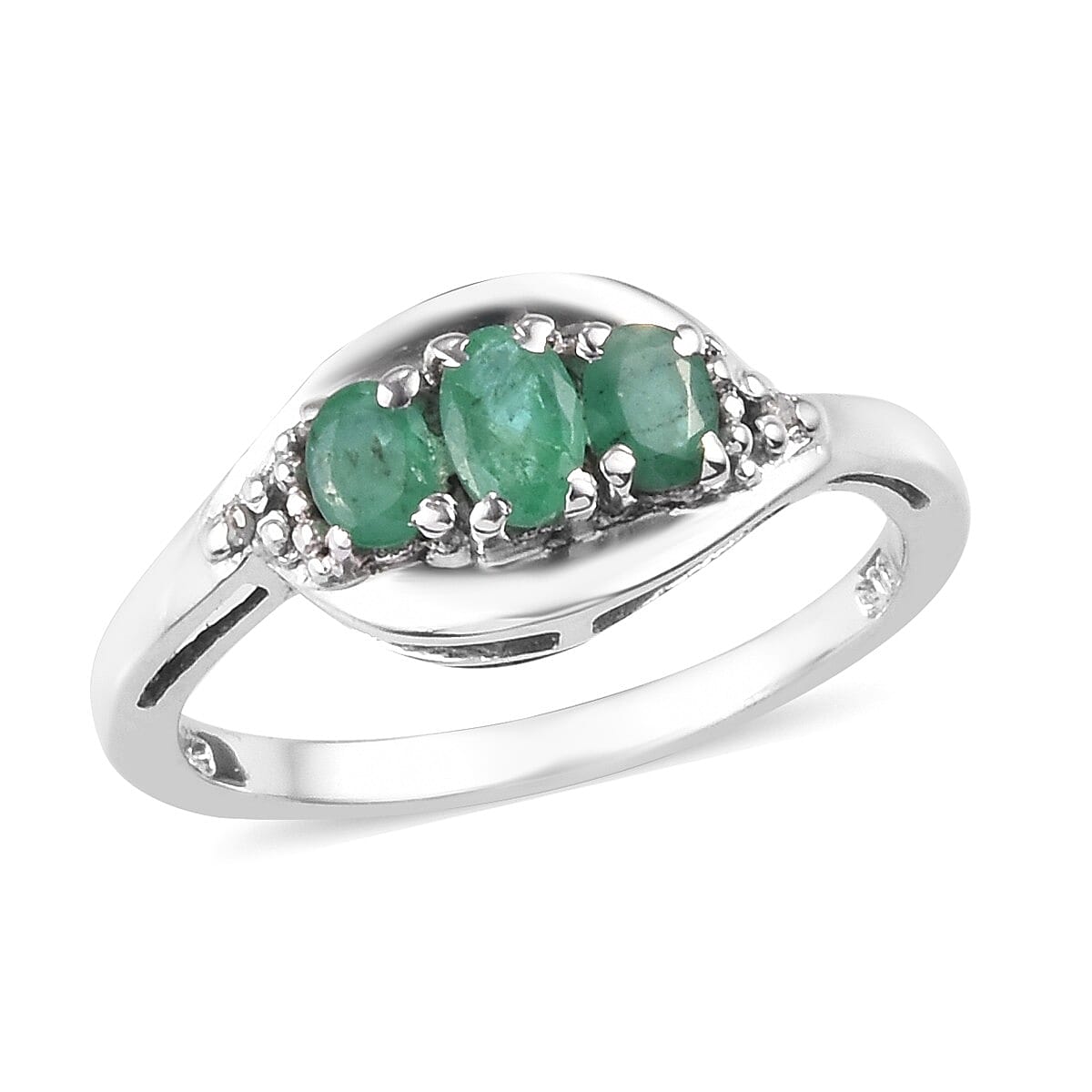 Emerald Ring in Platinum Over Sterling Silver (Size 7.0) 1.10 ctw