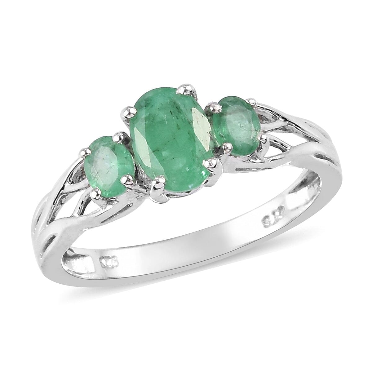 Emerald Ring in Platinum Over Sterling Silver (Size 5) 1.70 ctw