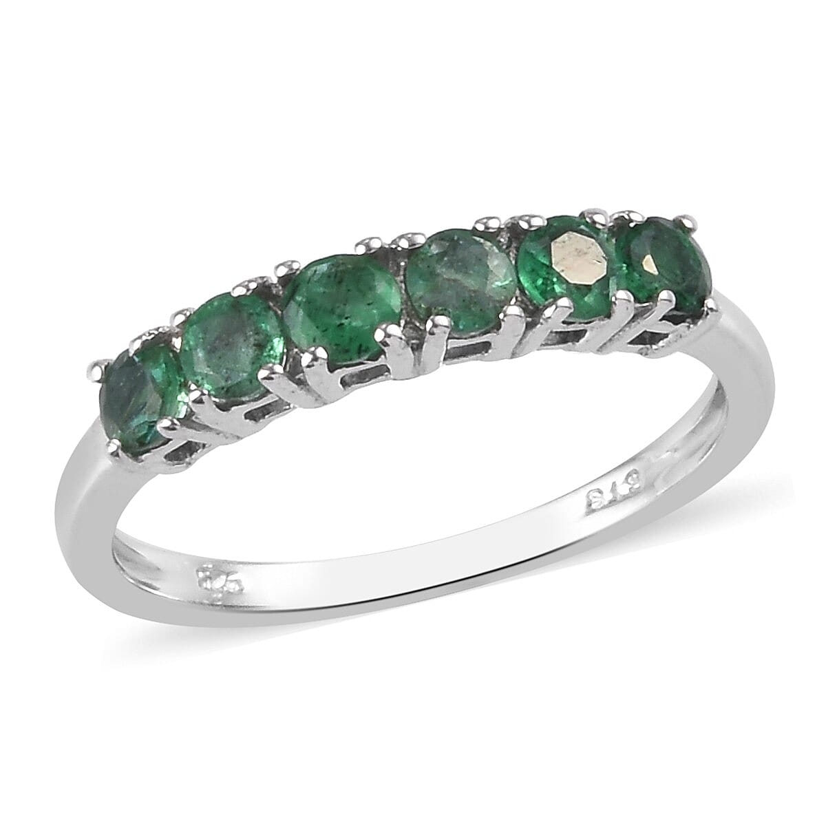 Look no further for distinctive charm as you grace your finger with this beautiful band ring. The exotic deep green round cut emerald gemstone sparkles effortlessly with classy detail. This compelling beauty is crafted in platinum over sterling silver, giving you just the elegance you deserve.