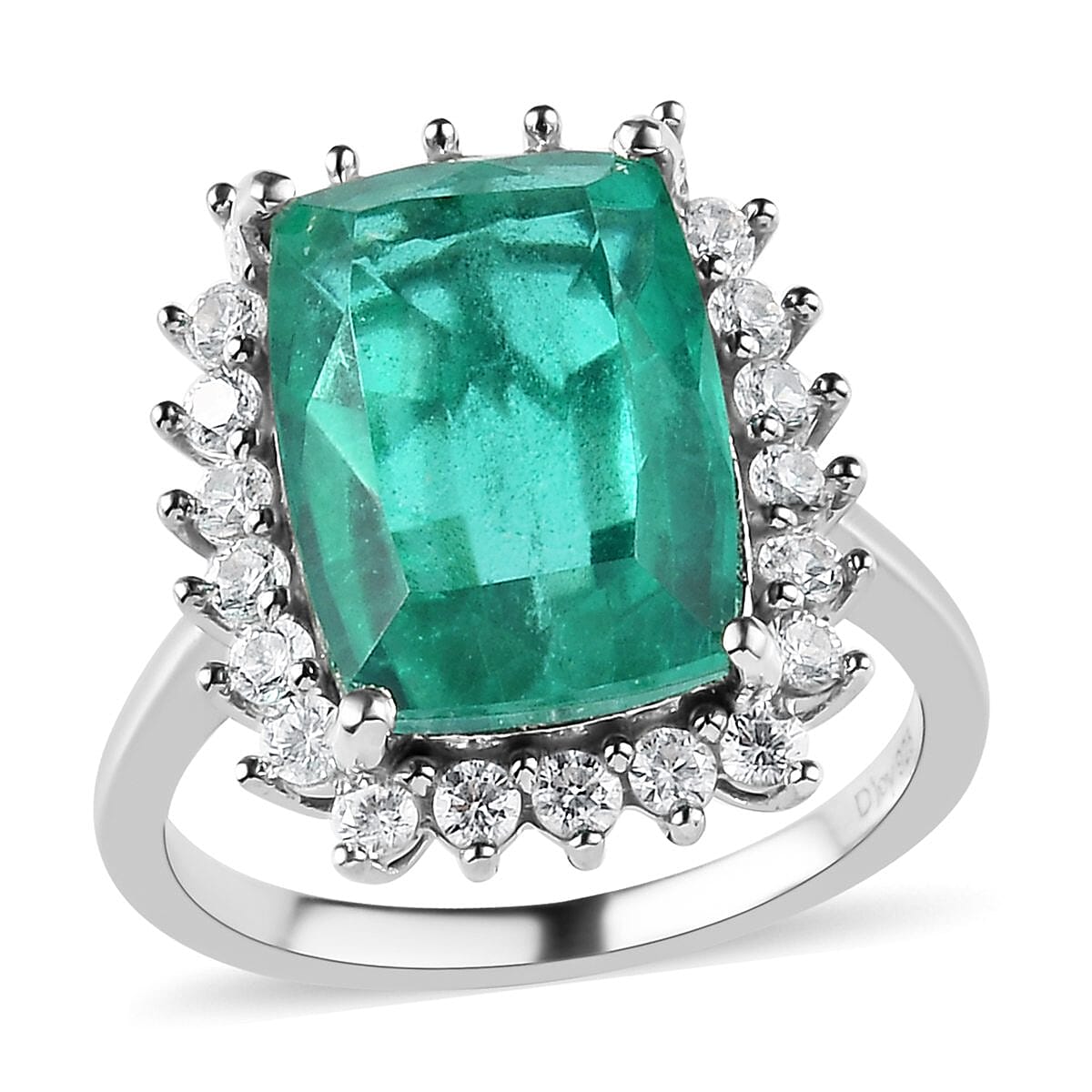 Emeraldine Quartz (Triplet) and Natural White Zircon Sunburst Ring in Platinum Over Sterling Silver (Delivery in 7-10 Business Days) 8.15 ctw