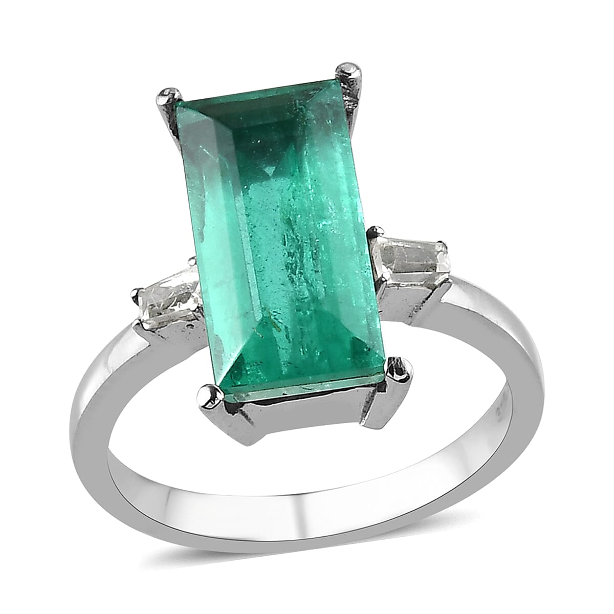 Emeraldine Quartz (Triplet) and White Topaz Ring in Stainless Steel (Delivery in 7-10 Business Days) 5.00 ctw