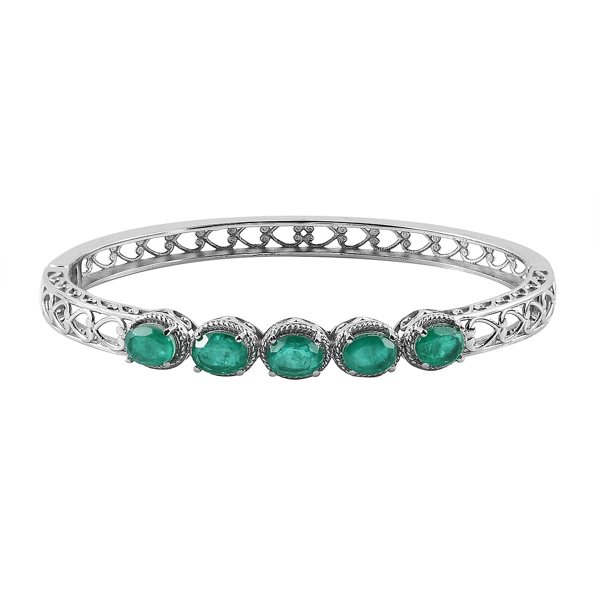 Emeraldine Quartz (Triplet) Bangle Bracelet in Stainless Steel (8.00 In) 8.00 ctw