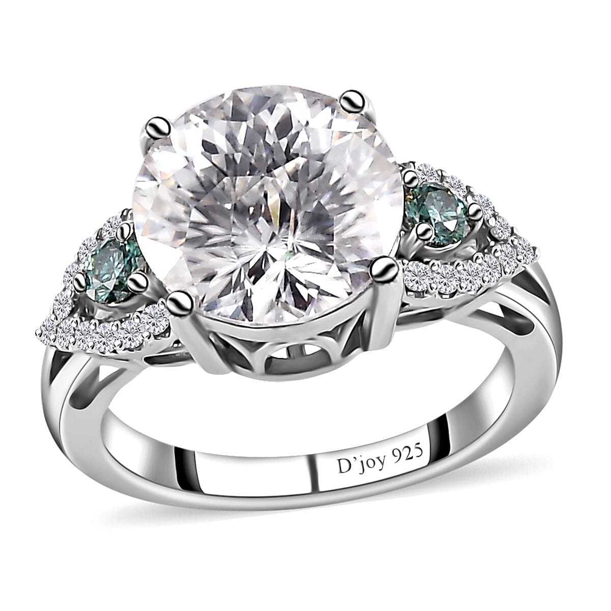 Emperor Cut Moissanite and Blue Moissanite Ring in Platinum Over Sterling Silver (Size 9.0) 3.85 ctw
