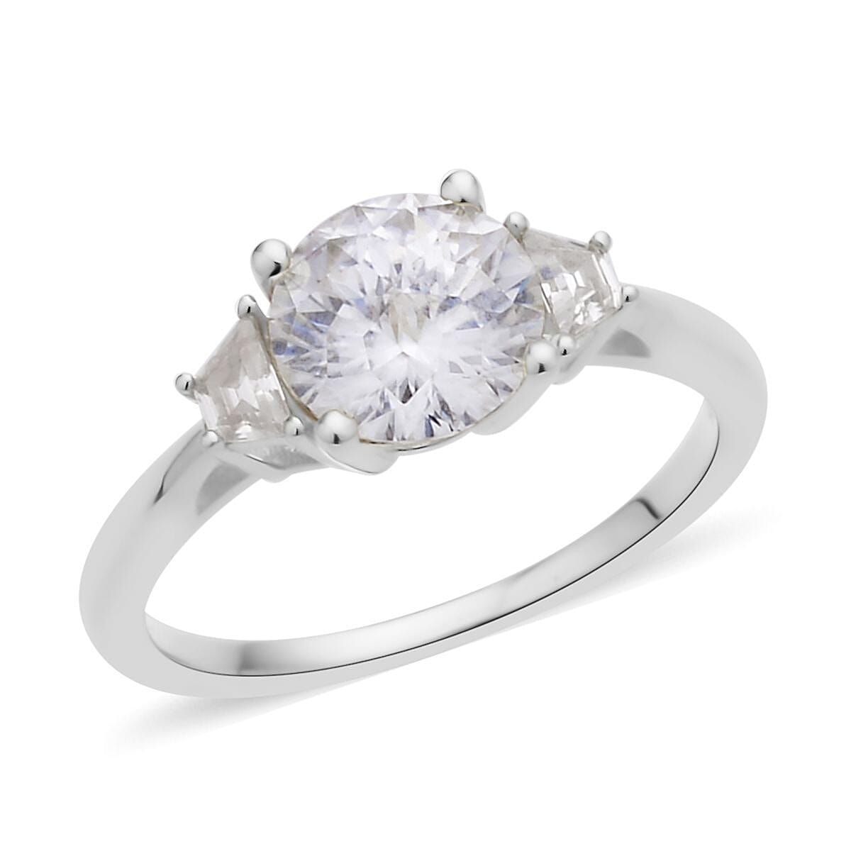 Emperor Cut Moissanite Ring in Platinum Over Sterling Silver (Size 9.0) 2.00 ctw