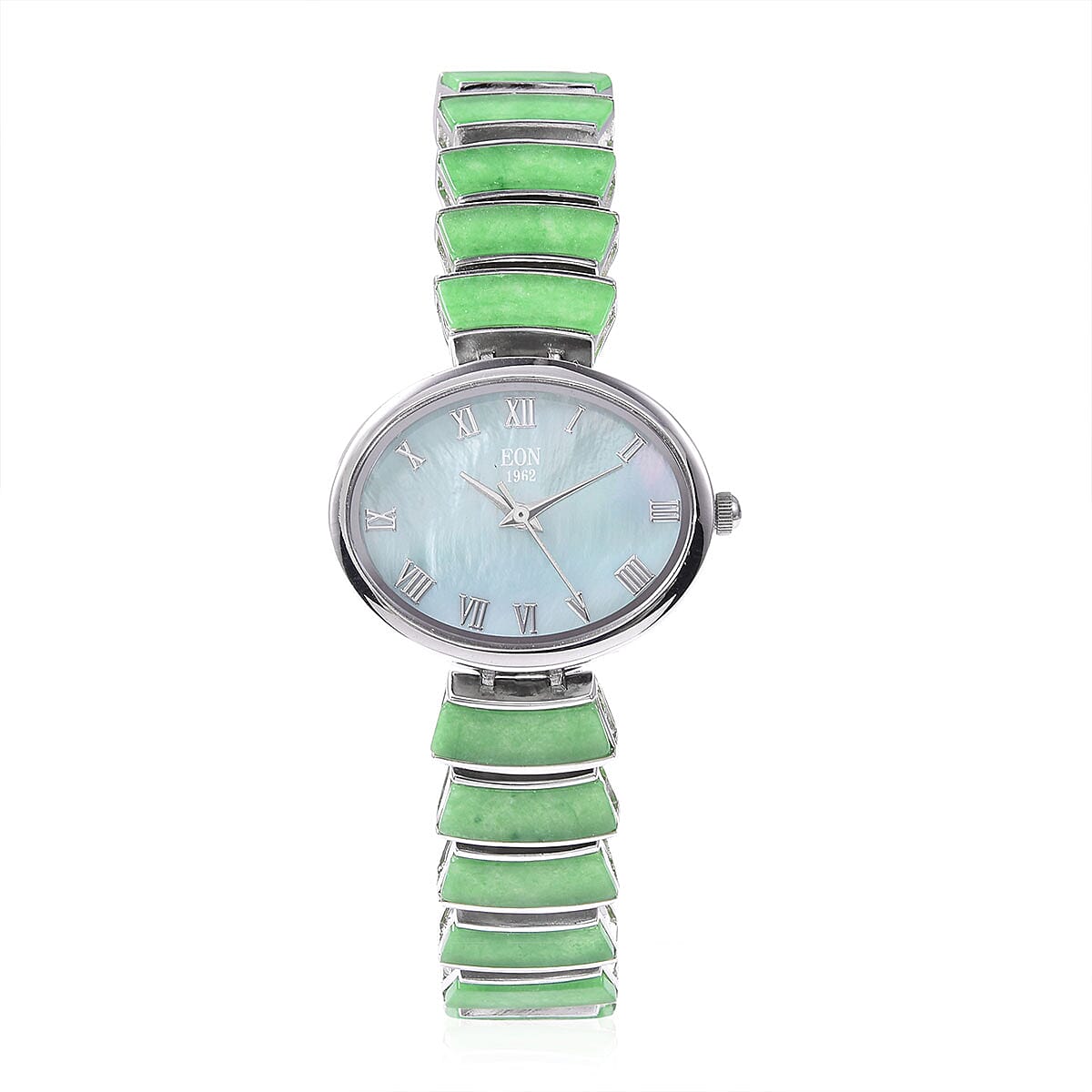 EON 1962 Green Jade Swiss Movement Bracelet Watch (6.5-8in) in Sterling Silver with Stainless Steel Back & Buckle (51.10 g) 19.00 ctw