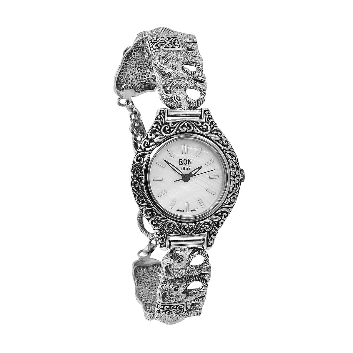 EON 1962 Swiss Movement Elephant Bracelet Watch in Sterling Silver (6.50-8.25 in) (26mm)