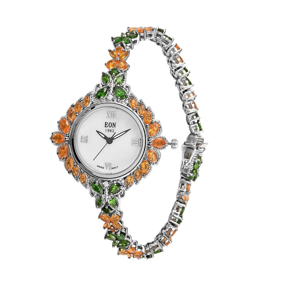 Eon 1962 Swiss Movement Multi Gemstone Watch in Platinum Over Sterling Silver 11.75 ctw