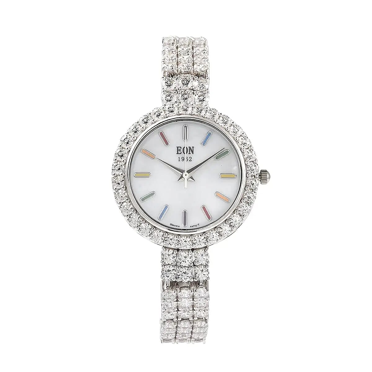 Eon 1962 Swiss Movement White Crystal MOP Dial Watch in Sterling Silver