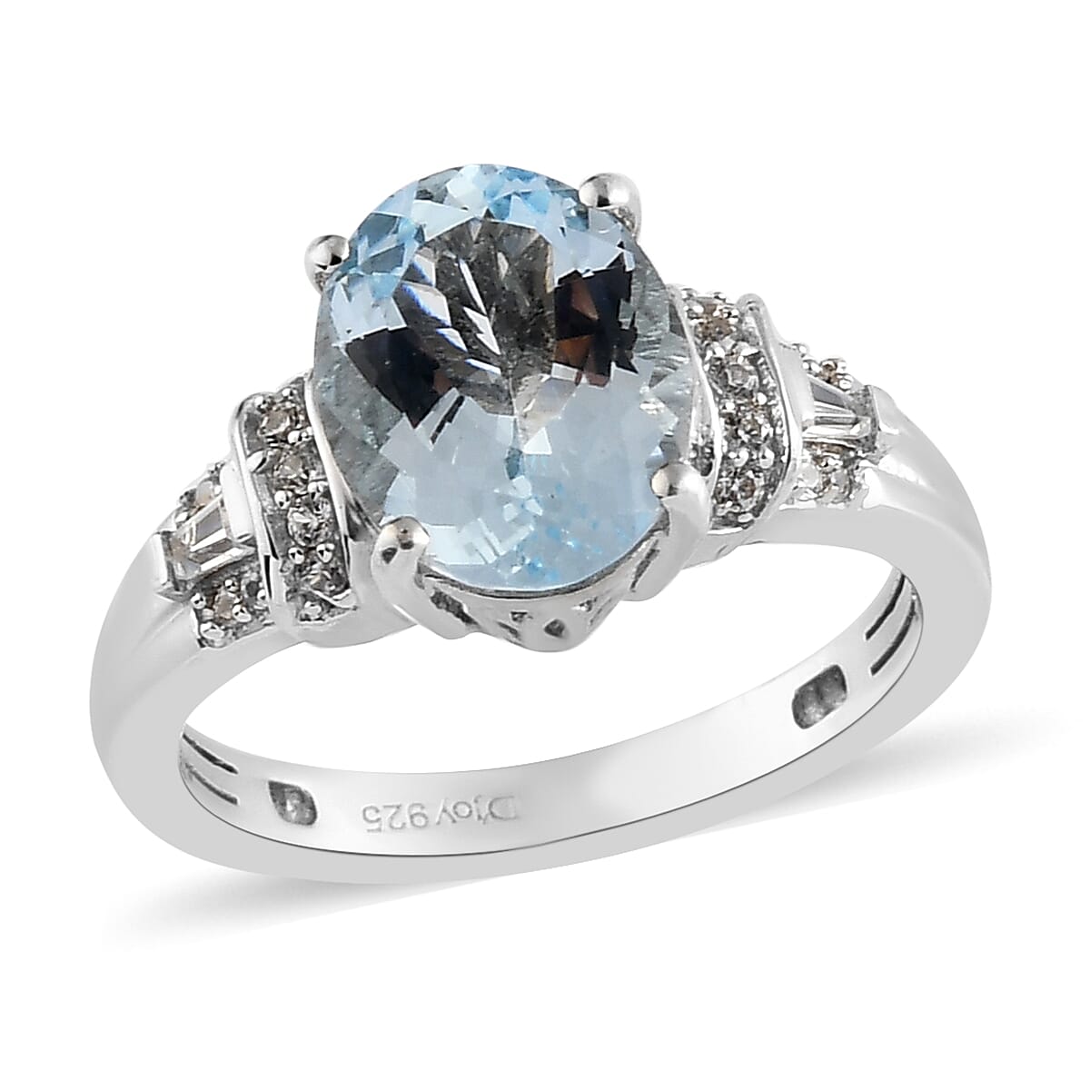 Espirito Santo Aquamarine and Natural White Zircon Ring in Platinum Over Sterling Silver (Size 9.0) 2.65 ctw
