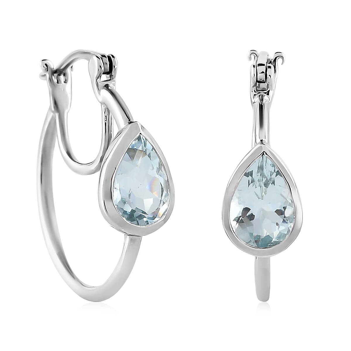 Espirito Santo Aquamarine Hoop Earrings in Platinum Over Sterling Silver 2.35 ctw