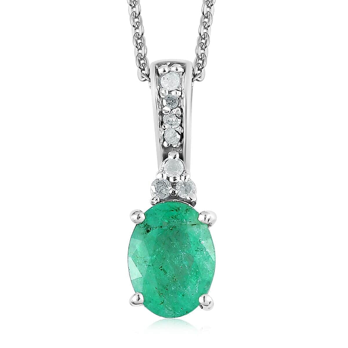 Ethiopian Emerald and Diamond Pendant Necklace 20 Inches in Platinum Over Sterling Silver 1.20 ctw