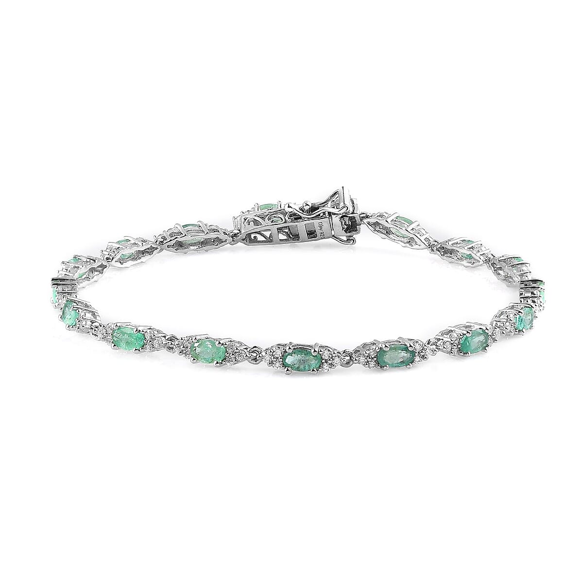 Ethiopian Emerald and Moissanite Bracelet in Platinum Over Sterling Silver (8.00 In) 4.75 ctw