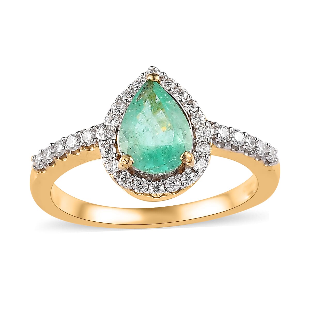 Ethiopian Emerald and Moissanite Halo Ring in Vermeil Yellow Gold Over Sterling Silver (Size 9.0) 1.30 ctw
