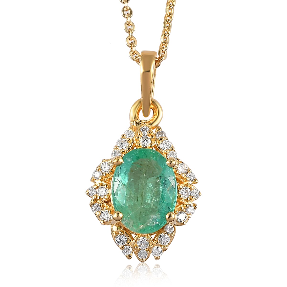 Ethiopian Emerald and Moissanite Pendant Necklace 20 Inches in Vermeil Yellow Gold Over Sterling Silver 1.25 ctw