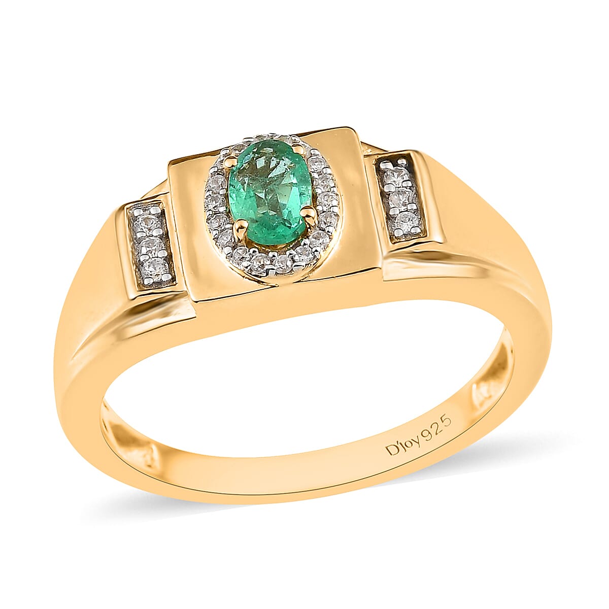Ethiopian Emerald and Natural White Zircon Men's Ring in Vermeil Yellow Gold Over Sterling Silver 0.75 ctw