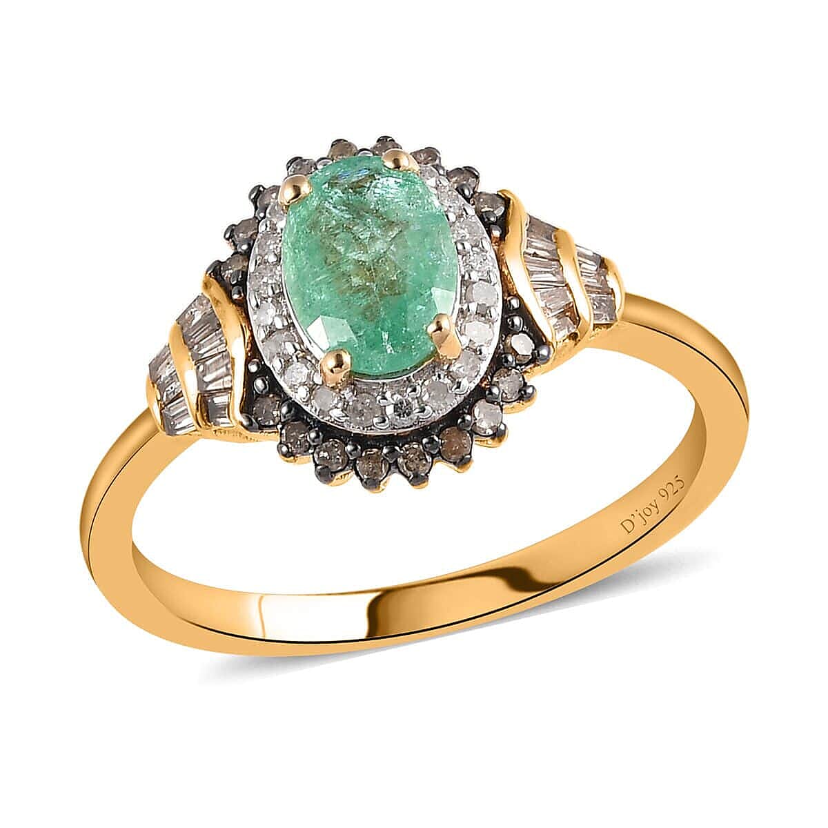 Ethiopian Emerald, Natural Champagne and White Diamond Cocktail Ring in Vermeil Yellow Gold Over Sterling Silver (Size 6.0) 1.20 ctw