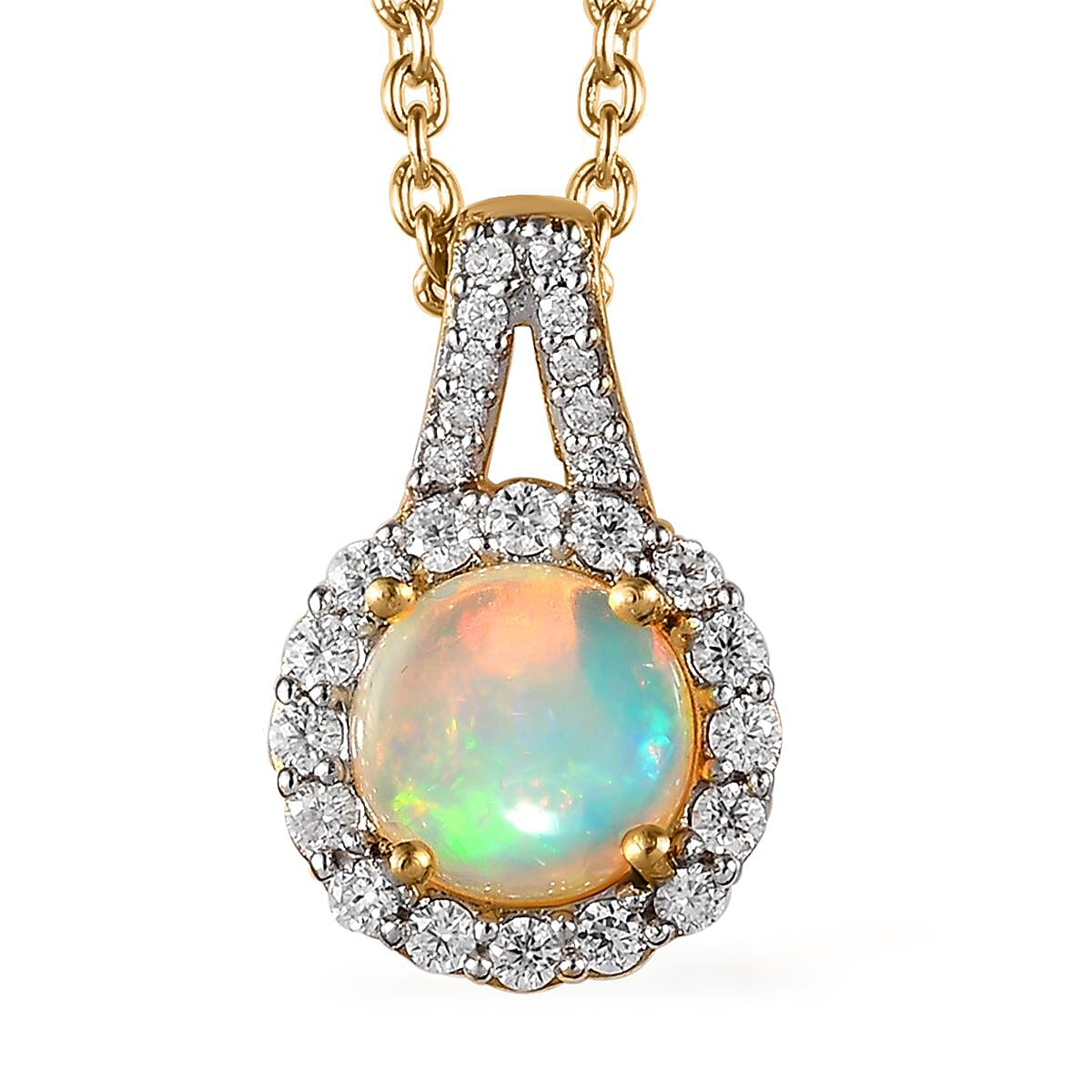Ethiopian Welo Opal and Moissanite Pendant Necklace 20 Inches in Vermeil Yellow Gold Over Sterling Silver 1.10 ctw