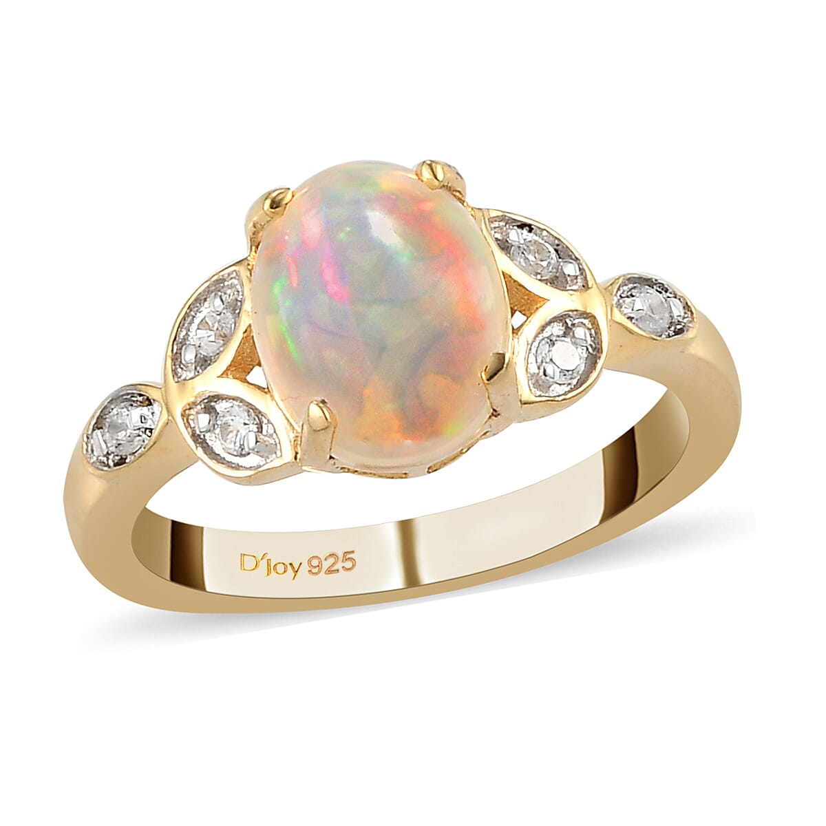 Ethiopian Welo Opal and Natural White Zircon Ring in Vermeil Yellow Gold Over Sterling Silver (Shipped in 5-7 Business Days) 1.25 ctw