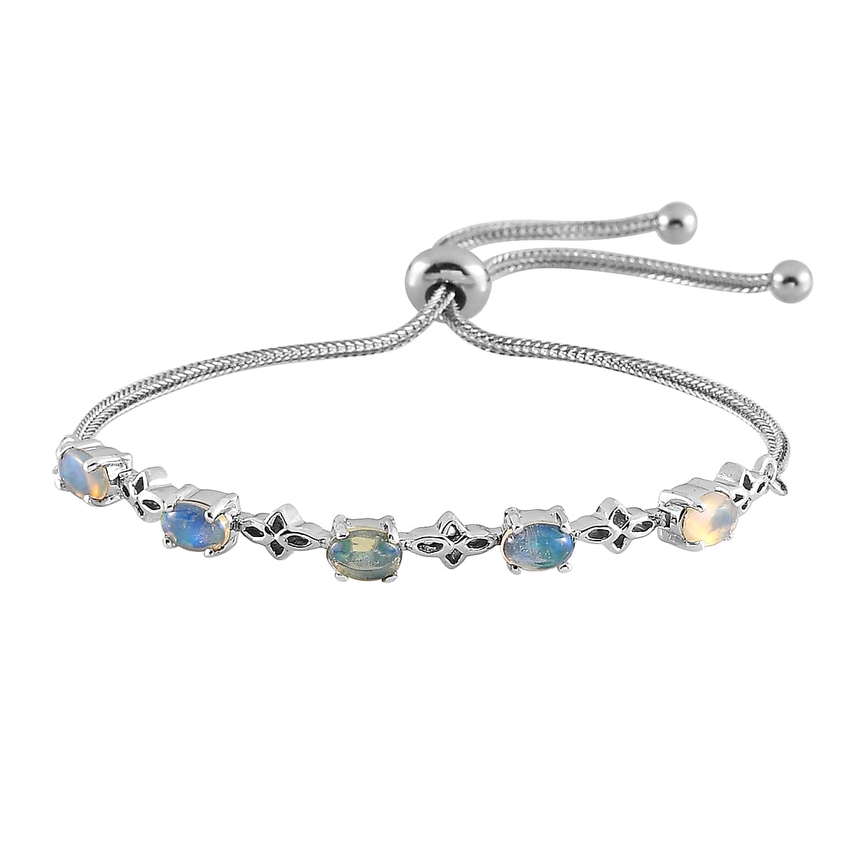 Ethiopian Welo Opal Bolo Bracelet in Platinum Over Sterling Silver and Stainless Steel 1.40 ctw
