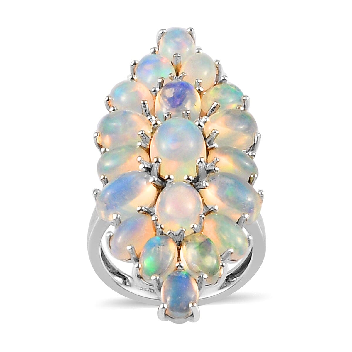 Ethiopian Welo Opal Cluster Ring in Platinum Over Sterling Silver (Size 11.0) 8.15 ctw