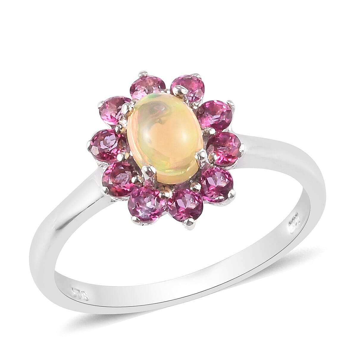 Ethiopian Welo Opal and Morro Redondo Pink Tourmaline Ring in Platinum Over Sterling Silver (Size 9.0) 2.00 ctw