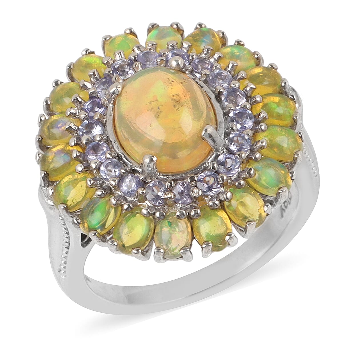 Ethiopian Welo Opal and Tanzanite Cocktail Ring in Platinum Over Sterling Silver (Size 9.0) 9.20 ctw
