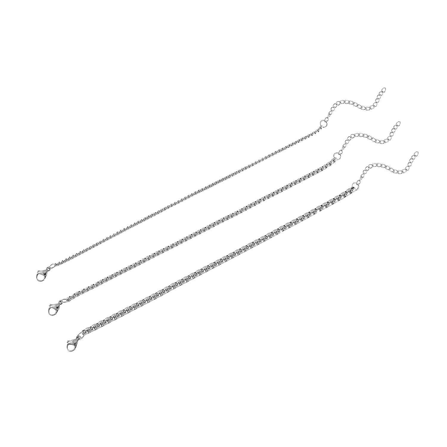 Ever True Set of 3 Round Box Chain Bracelet in Stainless Steel (7.50-9.50In)