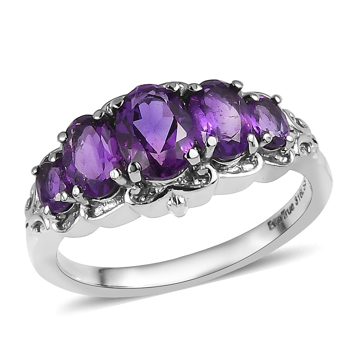 EverTrue African Amethyst 1.85 ctw 5 Stone Ring in Stainless Steel (Size 8.0)