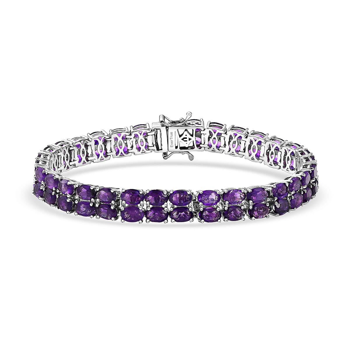 EverTrue African Amethyst 27.10 ctw Two Row Carpet Bracelet in Platinum Bond (8.00 In)