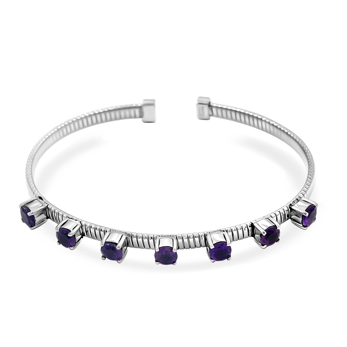 EverTrue African Amethyst 3.30 ctw Classic Cuff Bracelet in Stainless Steel (7.25 In)