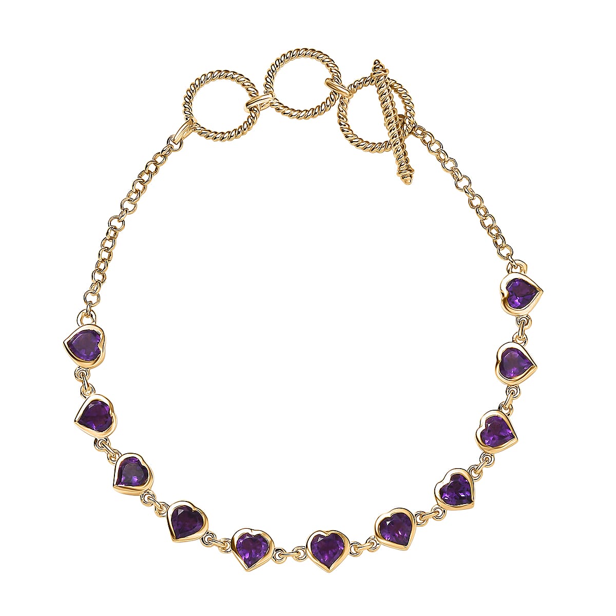 EverTrue African Amethyst 4.65 ctw Heart Journey Bracelet in 18K YG Plated with ION Plated YG Stainless Steel (7.25-8.25In)